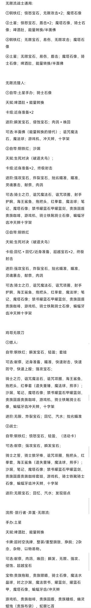 其中过牌手段里最常用的是无限宝石、愤怒宝石、回忆、献祭;回蓝手段里最常用的是魔塔石像,魔塔石像拿不到时如果用的是攻击牌就可以用魔法笔记回蓝;法师的冰转电无限流可以用快速思考实现无限流,不依赖宝物。