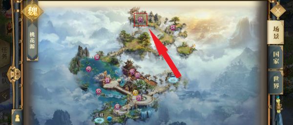 2、打开地图,回到我们刚进入游戏时的“桃花源”,找到师傅,自动寻路过去。