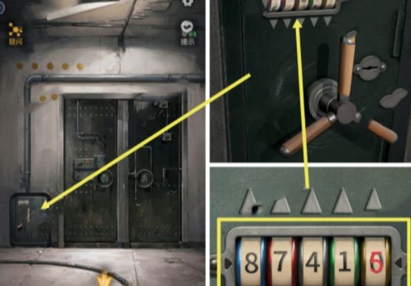 24、点击密码箱上的密码锁,根据上面的提示颜色,输入密码87415蓝-三横两点-8、红-两横三点-7、黑-四点一横-4、绿-一点四横-1、黄-五个点-5。