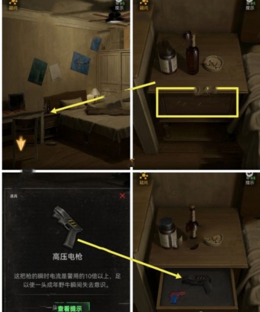 16、打开左侧床头柜抽屉,得到“高压电枪”。
