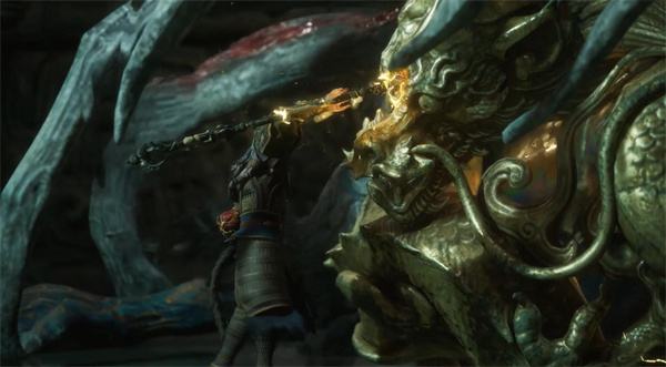 而在保存点旁的深渊下,有一位boss需要我们击杀,名为魔将莲眼这是个无近战手段但是远程输出手段很多的boss,只要灵活运用棍花便可以化解。
