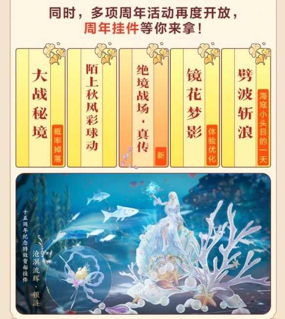 4、活动奖励:十五周年纪念特效皮背部挂件【沧溟流辉-银涟】。