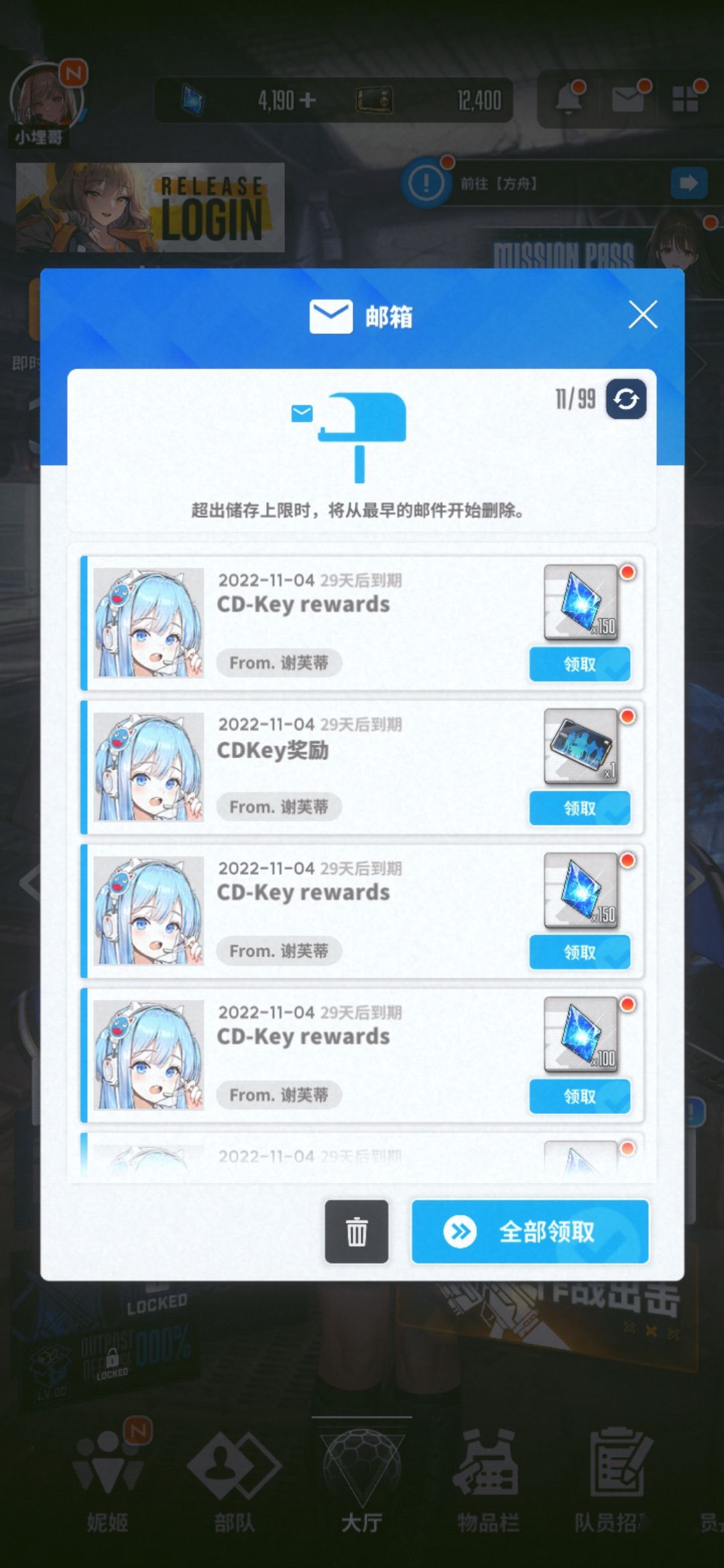 输入兑换码并提交,奖励将会发送到你的游戏邮箱中。