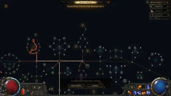 流放之路2支持武器专精,这是一种根据您的主武器动态切换天赋点的方法。您可以通过在战役期间升级和完成任务来获得这些天赋点。