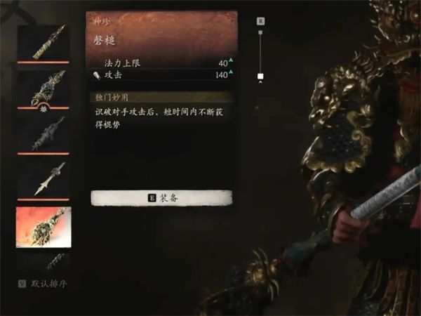 效果:与三尖两刃枪搭配时强化轻棍连招,轻击时伴随小飞剑攻击,极具观赏性和实用性。