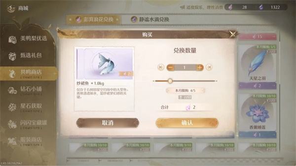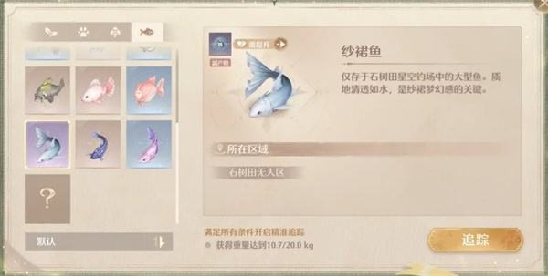 采集建议:如果钓点刷新太慢,也可以用澎湃浪花去兑换纱裙鱼,效率更高。