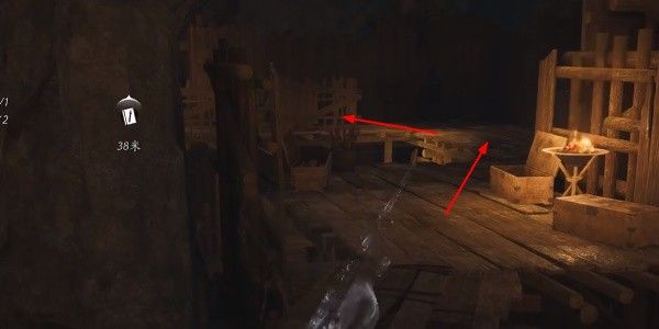 干掉敌人后,沿着密窟内的木架前进,直达二楼区域。