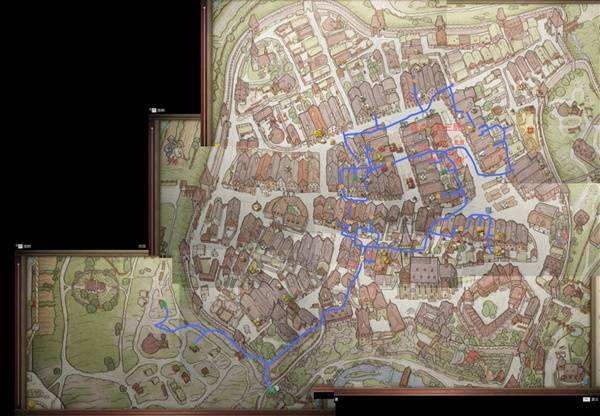 主线第二章到库腾堡会抓到个小蟊贼告诉你这个城市有地下隧道,但是裏面太容易迷路,所以自己照着画了个简单的地图。