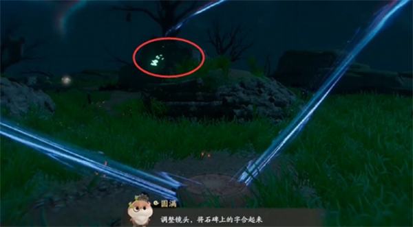 7、再返回圆盘那裏继续转视角让石碑能够拼出字。
