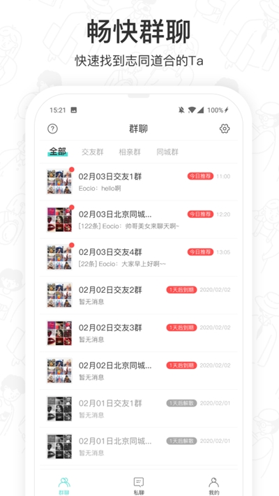 自动创建不同类型的群聊、真人认证审核,让你有一个有趣又安全的交友环境。