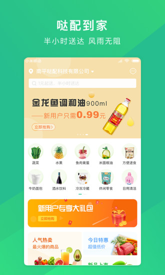 哒配是一款为用户提供生鲜配送和各种日常用品的外卖软件,为用户配送果、蔬菜、肉禽蛋奶、海鲜水产、粮油调味、酒水饮料等等,手机上直接下单,就近调货配送到家,让用户省钱省心、省时省力,快来下载一起买买买吧!