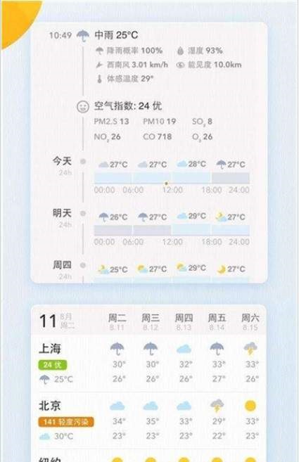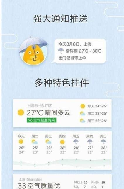 通过通知中心与桌面挂件取实时温度与空气质量,今日明日天气预报即时送达。