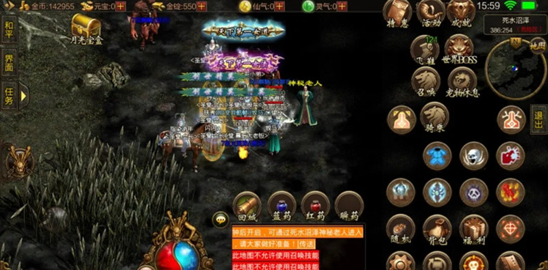 2、参与激战!天元秘境活动,通关击杀天元教主后,收集天元护符与天元结晶,找死水沼泽的神秘老人兑换护盾残片。