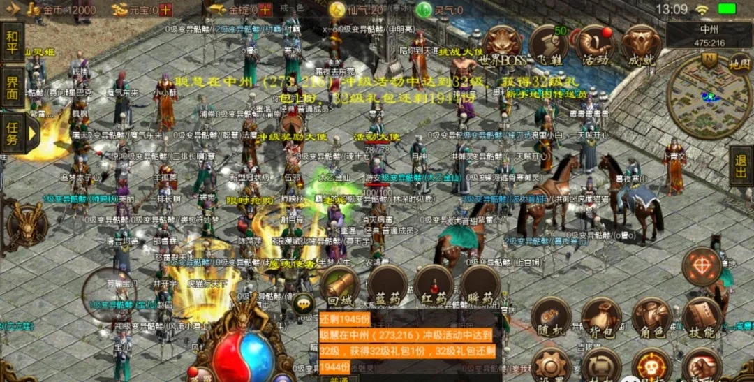 3、找到中州的新手地图传送员,带好药品,进入杀怪获得大量经验。