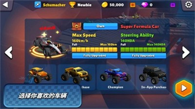 3、这里的赛车模型很有,什么怪兽卡车之类的都有,全部都能试一试。