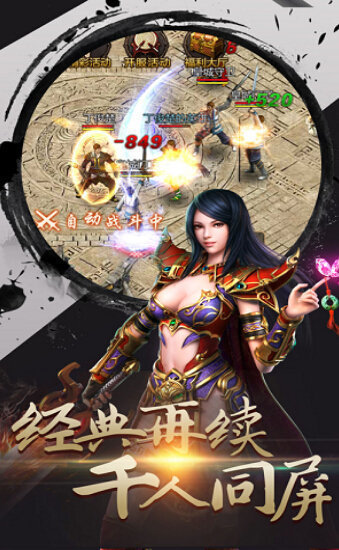 游戏玩法十分简单,经典传奇玩法让大家可以回顾游戏,并且万人攻城战让你热血沸腾!