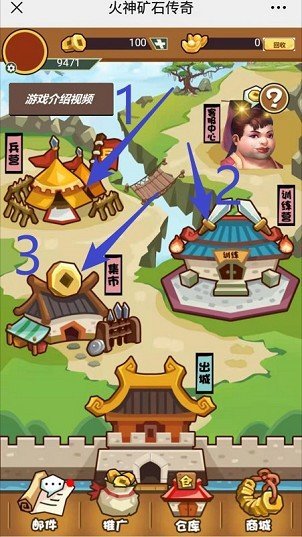 进入后,平台将赠送100枚铜币。然后,我们点击“军营”,用这100个铜币买一个士兵。