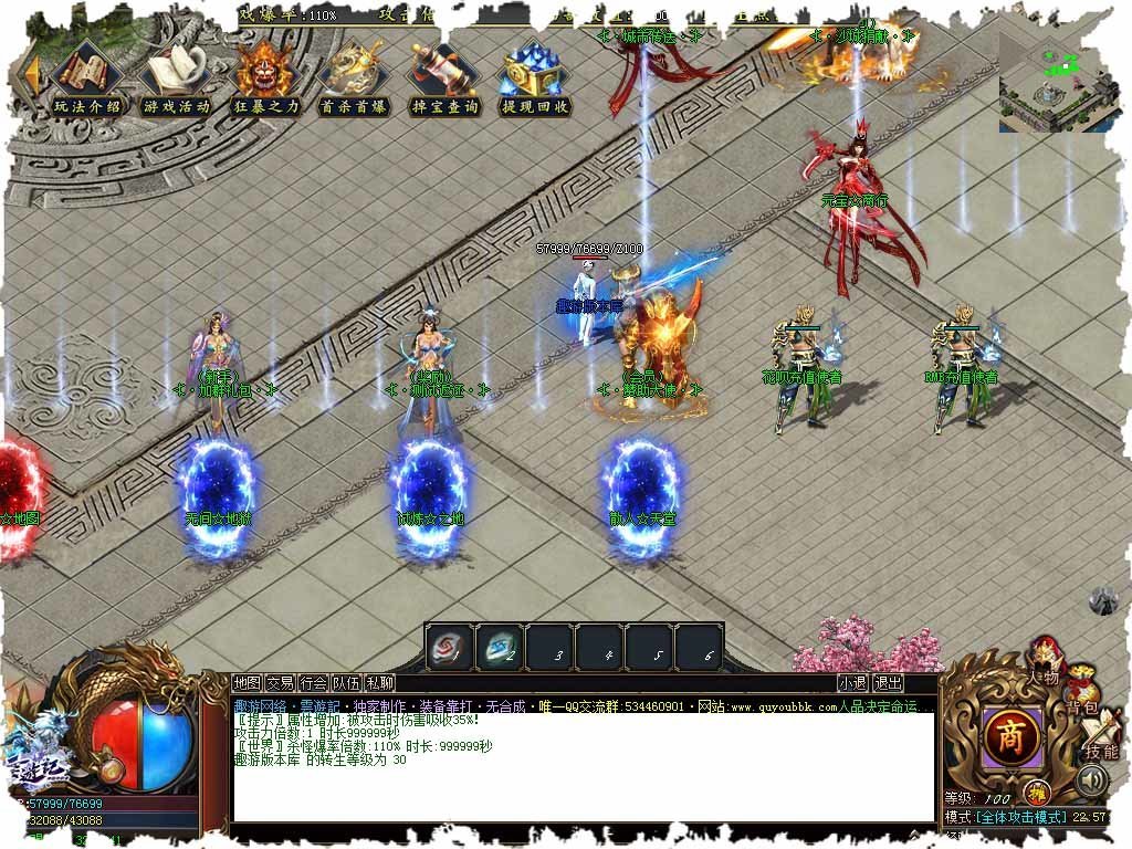 4、泡点升级,三职业可以一起出战,满爆率,不限速度,小怪也可以爆终极。