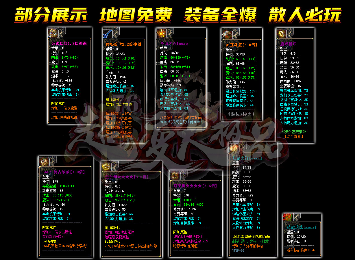 时装功能、切割灵玉、爆率神印、所有BOSS怪物都会掉落这些成品,非常容易获得!