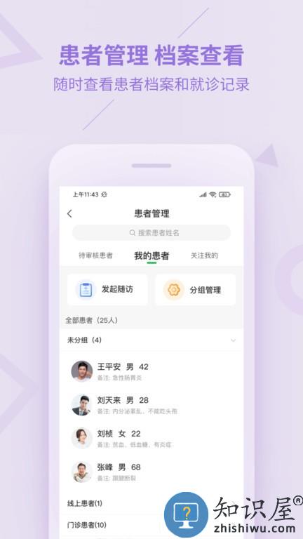 1、患者管理:患者在平安好医生(客户端)通过医生号添加医生,同时医生的患者列表将出现该患者,医生可标记患者为重要患者。
