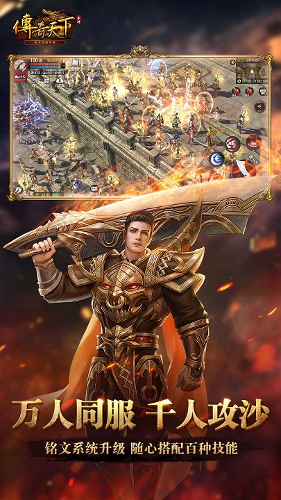 《传奇天下》震撼来袭,万人城战,公会抗争,全方位操控自由PK,再现传奇经典。嗜血PK、皇城争霸、酷炫翅膀、超级BOSS、新式副本等应有尽有,激烈刺激的对抗,更加真实的打斗效果 ,与你一起回忆精彩的传奇世界。