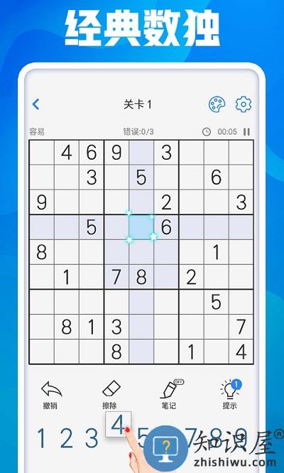 * 3种难度,入门/中等/大师,从新手到数独专家,成为数独杀手