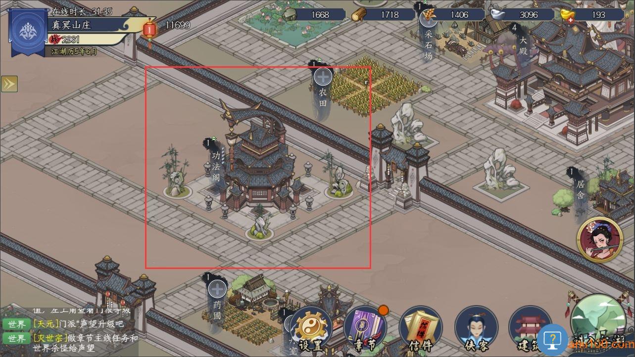 当掌门选定出生地点,正式进入江湖后便会来到属于你的宗门领地。在此各位掌门可以进行模拟经营,建立门派建筑,安排弟子进行采集等工作。