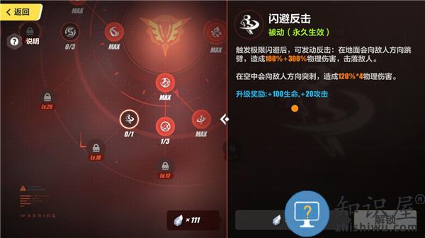 1、点出“闪避反击”能让角色的机动性进一步提高,且多一次伤害