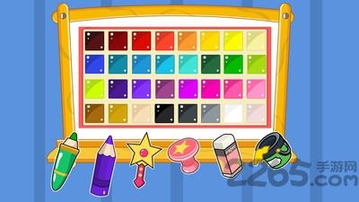 1.多种笔刷工具包括铅笔、蜡笔,其他工具有自动填色魔法棒、印章、橡皮擦、油漆桶和动画魔法棒,给图形上色后点击动画魔法棒可以播放作品。