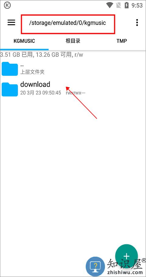 然后使用手机的文件管理器软件,找到这个下载地址,点击如下图所示的【download】文件夹