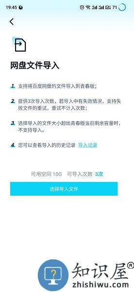 3、选择导入的文件大小超出青春版当前剩余容量时,不支持导入。