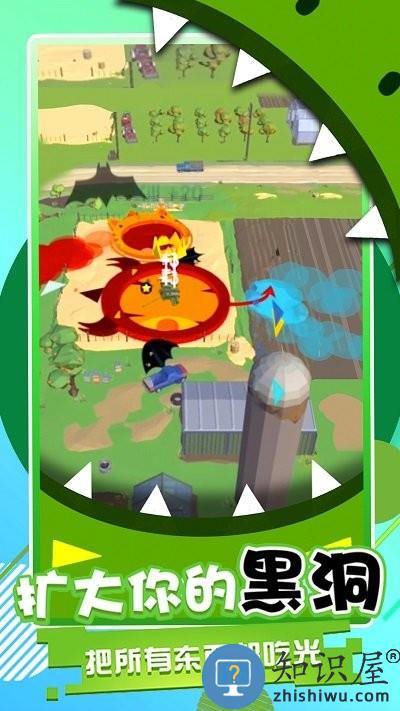 1、通过吞噬场景中的建筑和道具来扩张自己,根据大小选择你要吞噬的物品