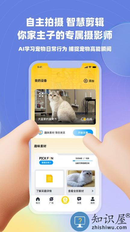 pickfun皮克方 ,一台有温度/有灵气/有创意/会思考的宠物短视频制造机。在pickfun app,与宠物远程互动、斗智斗勇,与亲友共享设备、同步rua宠,分享宠物短视频、花式打call,交流养宠心得、,随时随地云吸宠...... 记录宠物的无限可能。