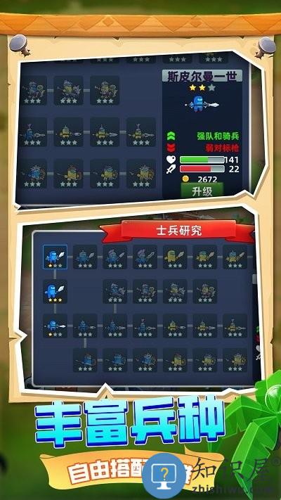 2、士兵解锁,很多不同的士兵种类需要解锁,大家就能很好的升级养成