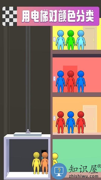 2、五颜六色的画面风格,灵活应对不同类型的电梯分类,不断掌握正确的分类方法和技巧,才可以让不同的人放置在相对应的电梯当中