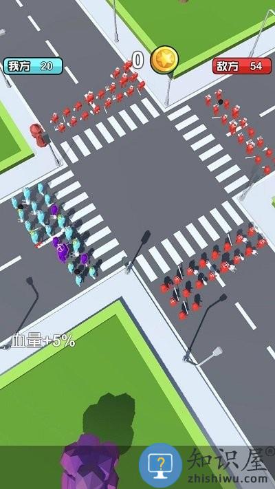 ·在大马路上开始对战,蓝色方和红色方分别率领一群小人开始战斗