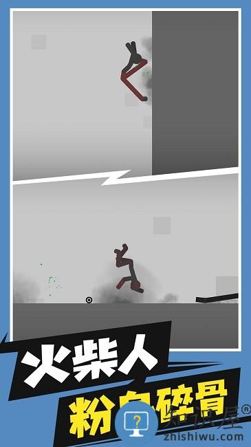 控制火柴人从跳台跳起,落地粉碎得越彻底,得分越高。