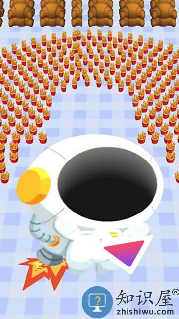 3、为了在竞争中占据主动,你需要通过滑动屏幕将自己控制的黑洞移动至可以吞噬的物体下方进行吞噬。