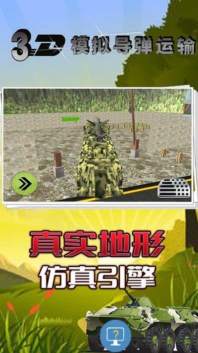 游戏画面十分精美,玩家将可以通过控制各种不同的运输机来运送各种不同的武器来到达指定地点以成功过关,包括导弹运输,模拟驾驶卡车,导弹的发射等等,,3D模拟导弹运输手游消灭敌人,享受导弹卡车的驾驶!发射! 这就是导弹运输司机的使命!