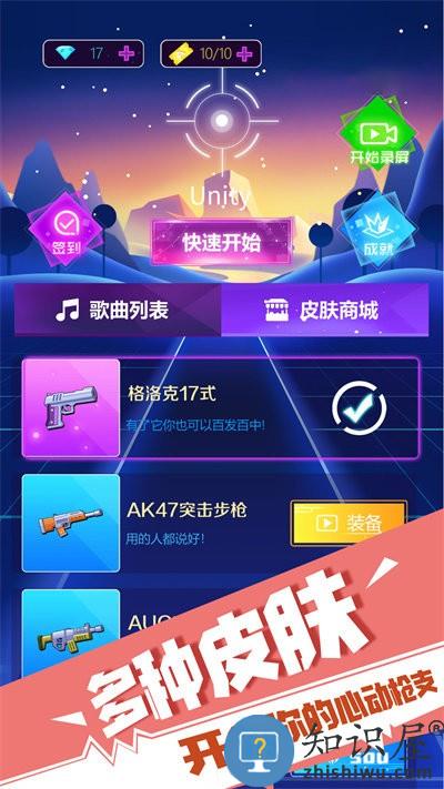 ·不要错过任何音符,收集来的钻石可以用来解锁新的音乐和枪的皮肤