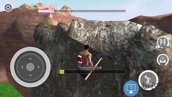 游戏开始时,你在一块岩石地里,被困在一个罐子里,从你的身体底部开始,手边只有一把大锤。