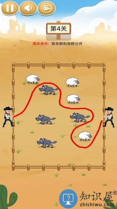 3、烧脑的画线挑战,用画线来保卫羊群,让它们避免狼群的袭扰。
