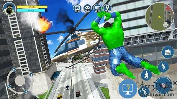 3、玩超级怪物英雄,并在强大的跳跃攻击的帮助下摧毁武装直升机。