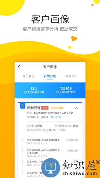 1.电子客档:客户数据云端存储,实现方便快捷的查询与管理。无论何时何地,置业顾问和销售团队都可以轻松获取客户信息,提高工作效率。