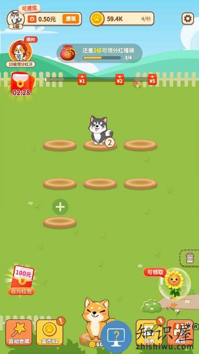 4、收集更多的小狗获得更多收益,轻松简单的玩法滑动手指就能合并养成,还有更多玩法需要你来体验.