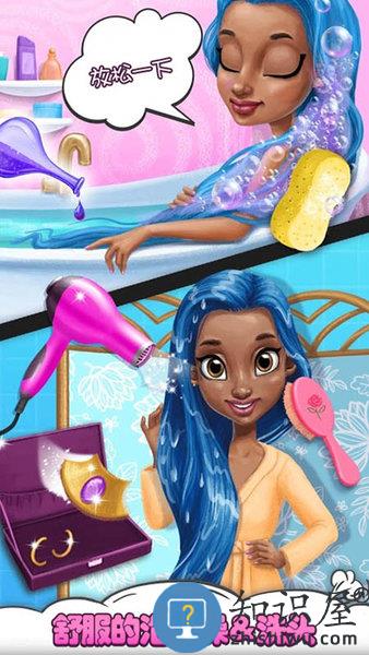 ·脸部护理工作,帮助魔仙公主清洗头发,吹干后用将头发梳理整齐并带上发卡固定好