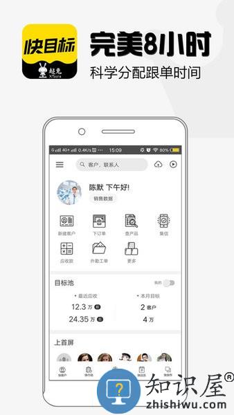 超兔CRM手机版科学分配您的跟单时间,内置有客户新建、写日报、查产品、看日报、销售机会、采集页、合同订单、周边客户等工具,内置目标池,可以轻松查看最近应收和本月的目标!