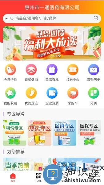一通医药app支持使用商品名、通用名、厂家或品牌进行搜索,快速找到您需要的药物,还有每日特价、套餐促销、领劵中心、热卖专区可以使用!