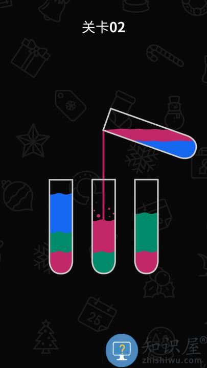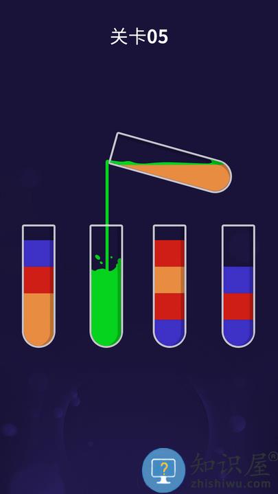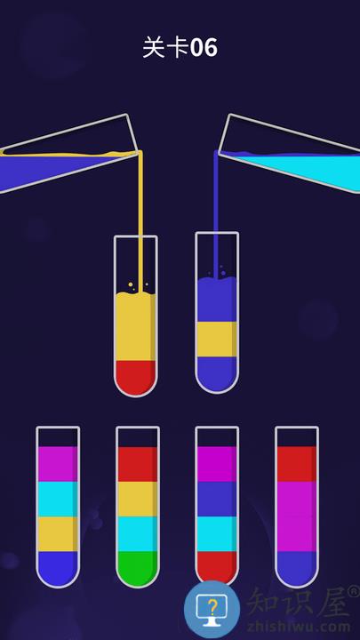 2.就能将五颜六色的水倒出,动动大脑,试着将所有试管装满同颜色的水吧!