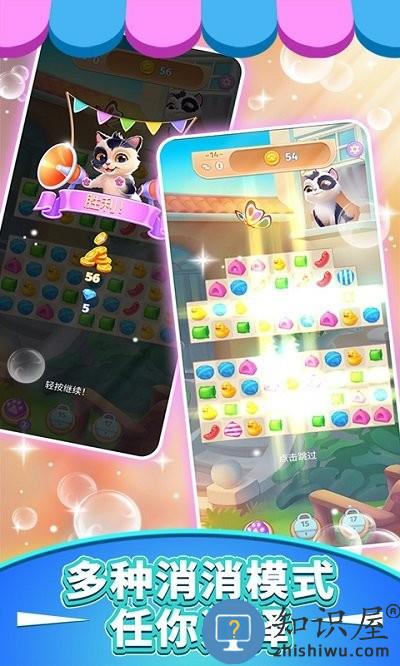 2、通过简单有趣的三消游戏获取更多的奖励,解锁更多猫咪!